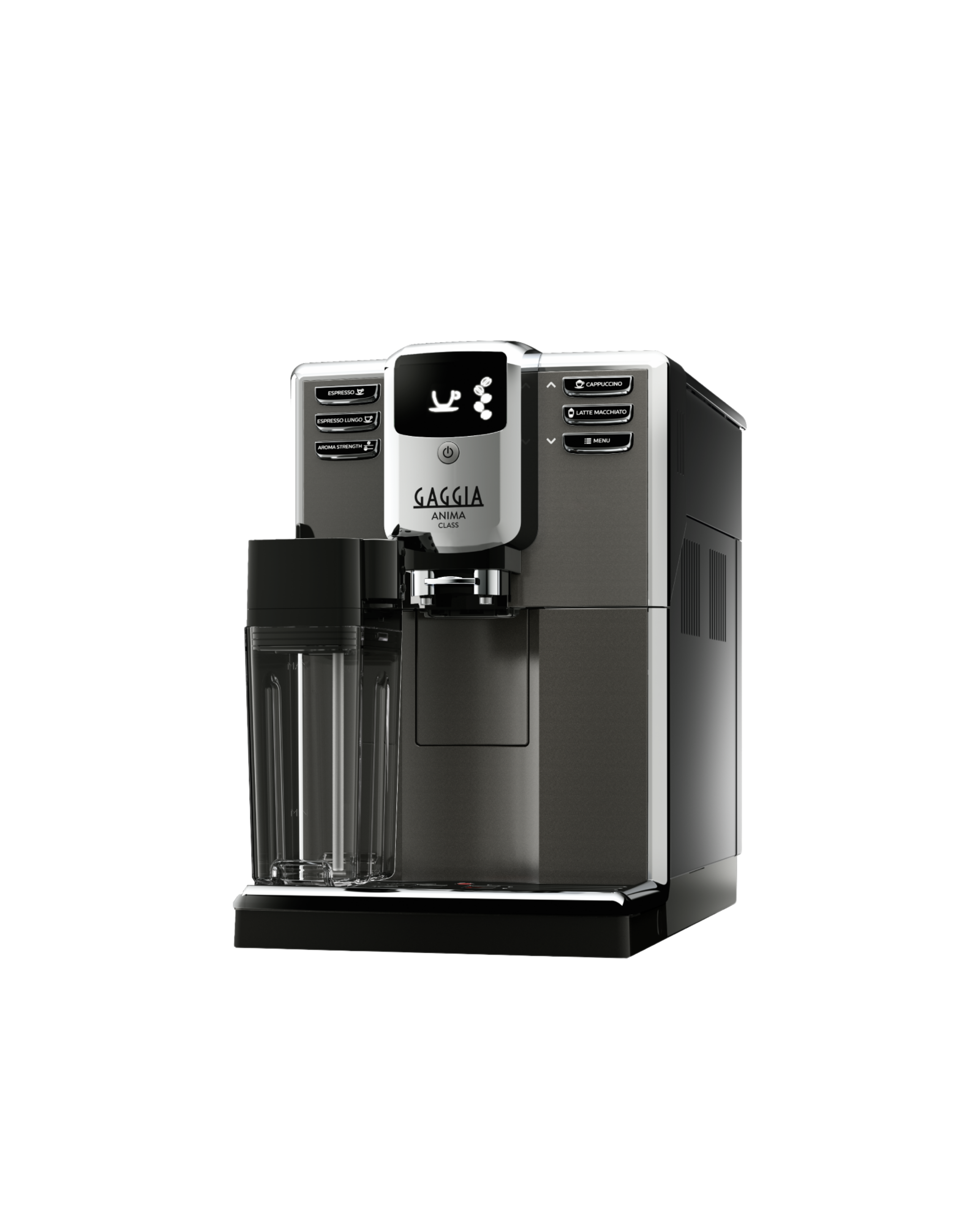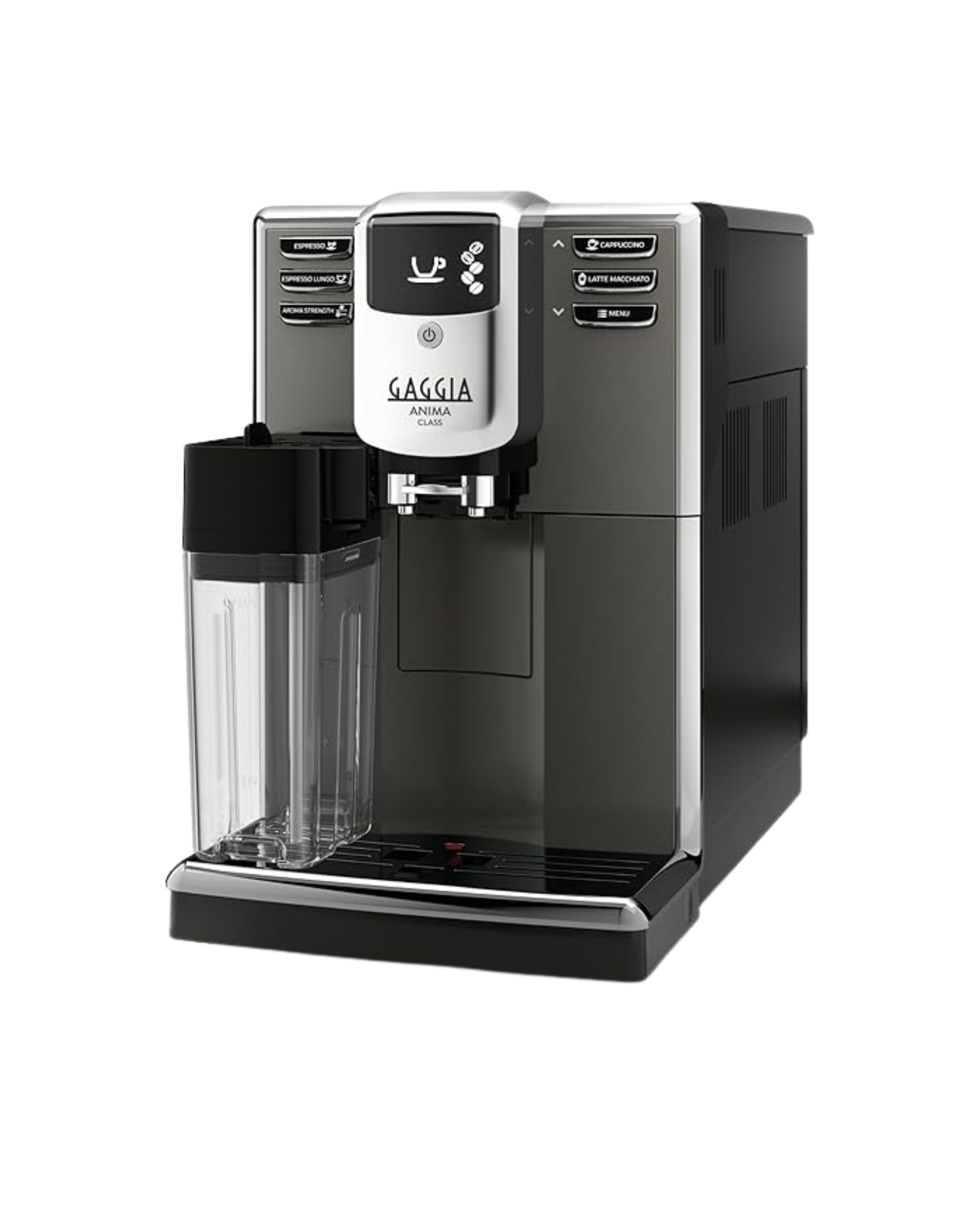 Durable and user-friendly, the Gaggia Anima Class delivers 5 coffee and milk-based drinks with 4 available at one touch. It features an integrated milk carafe with automatic cleaning, 100% ceramic grinders, and customizable strength and length for every cup.