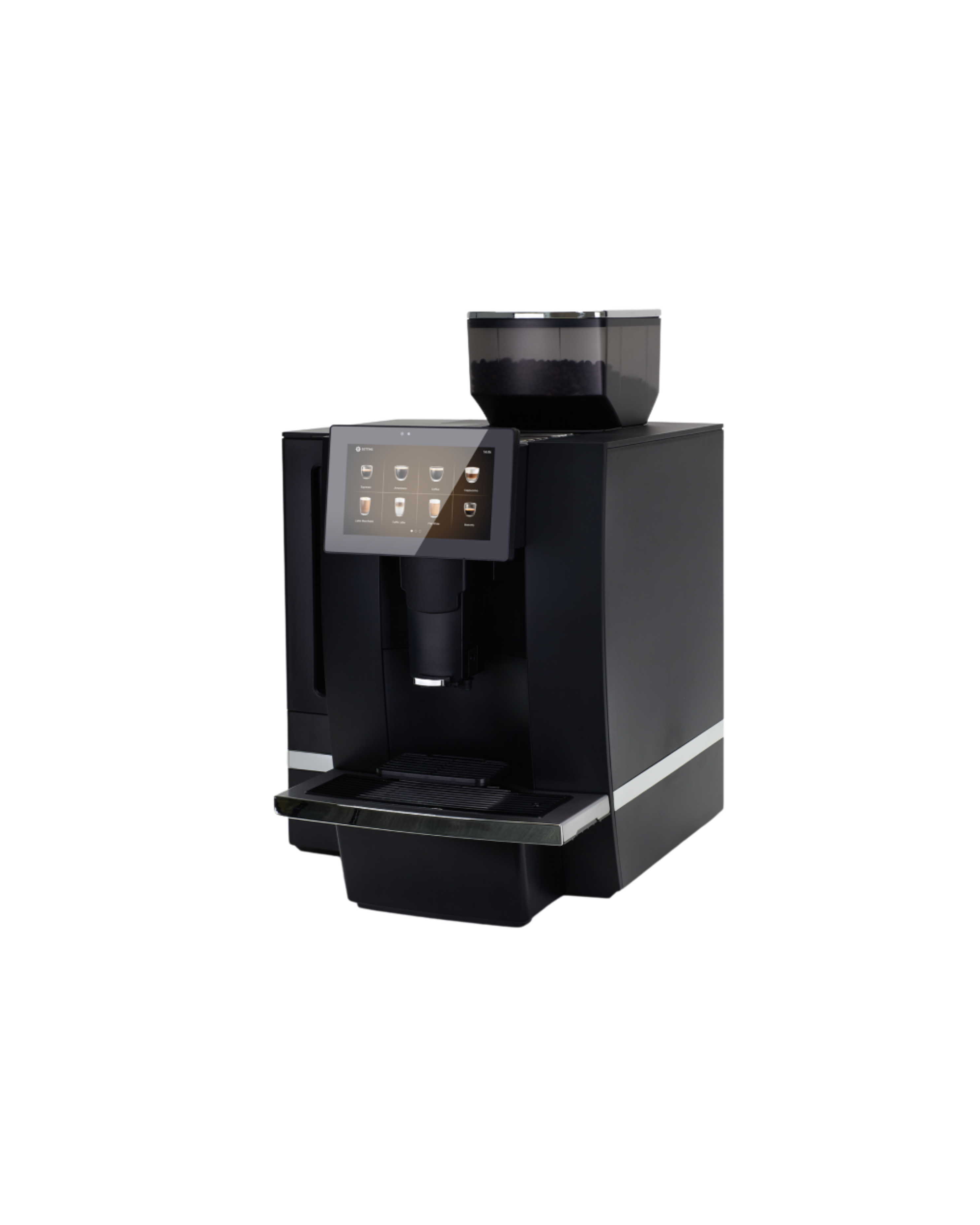 Durable and efficient, the Kalerm K95LT is a high-end automatic commercial coffee machine designed for high-volume use in cafés, restaurants, and conference settings. Featuring a 7″ LCD touchscreen running on Android, it offers over 20 programmable customizable beverages and supports brand promotion with programmable videos.
